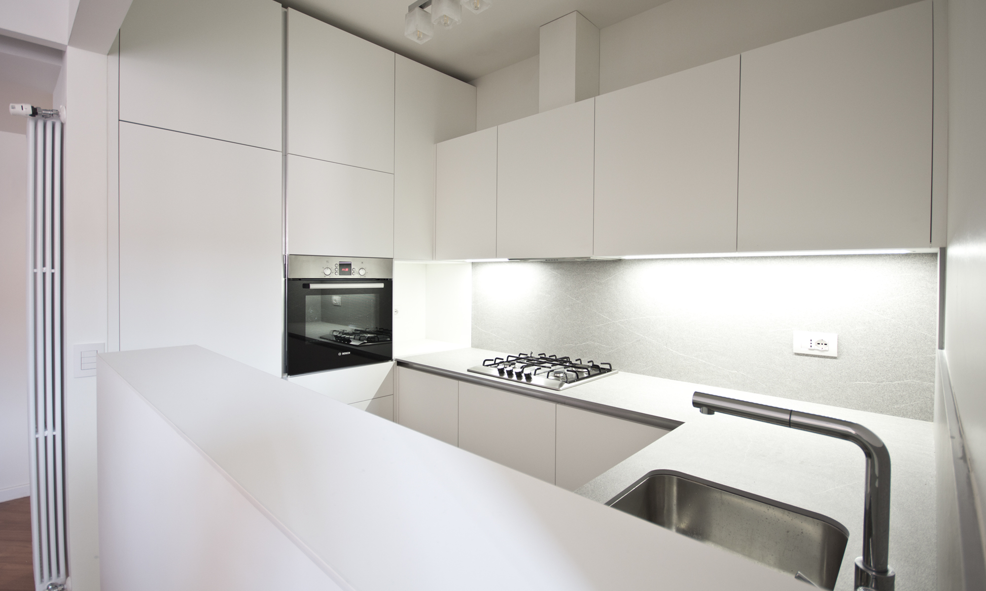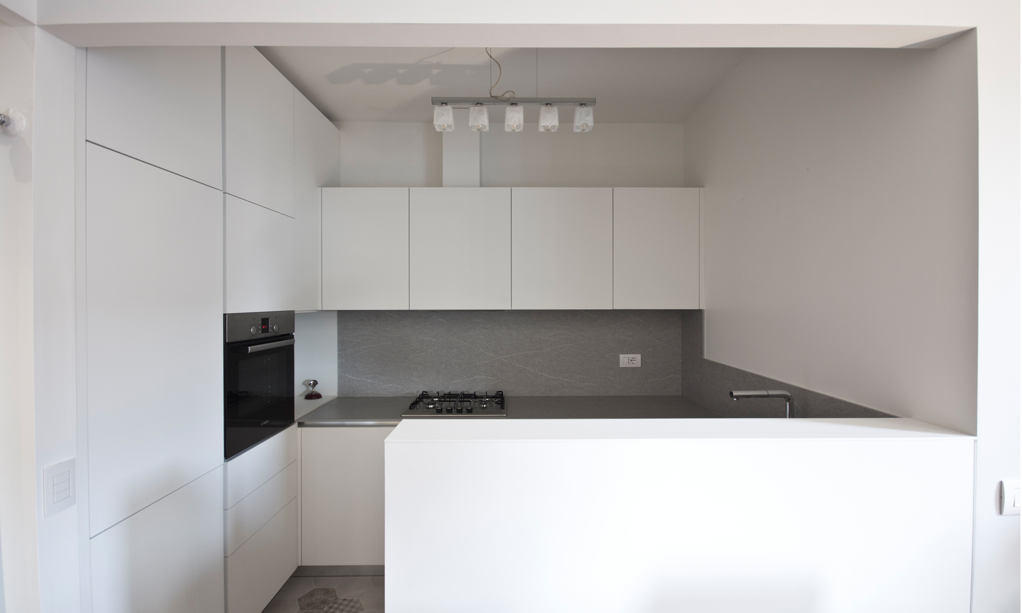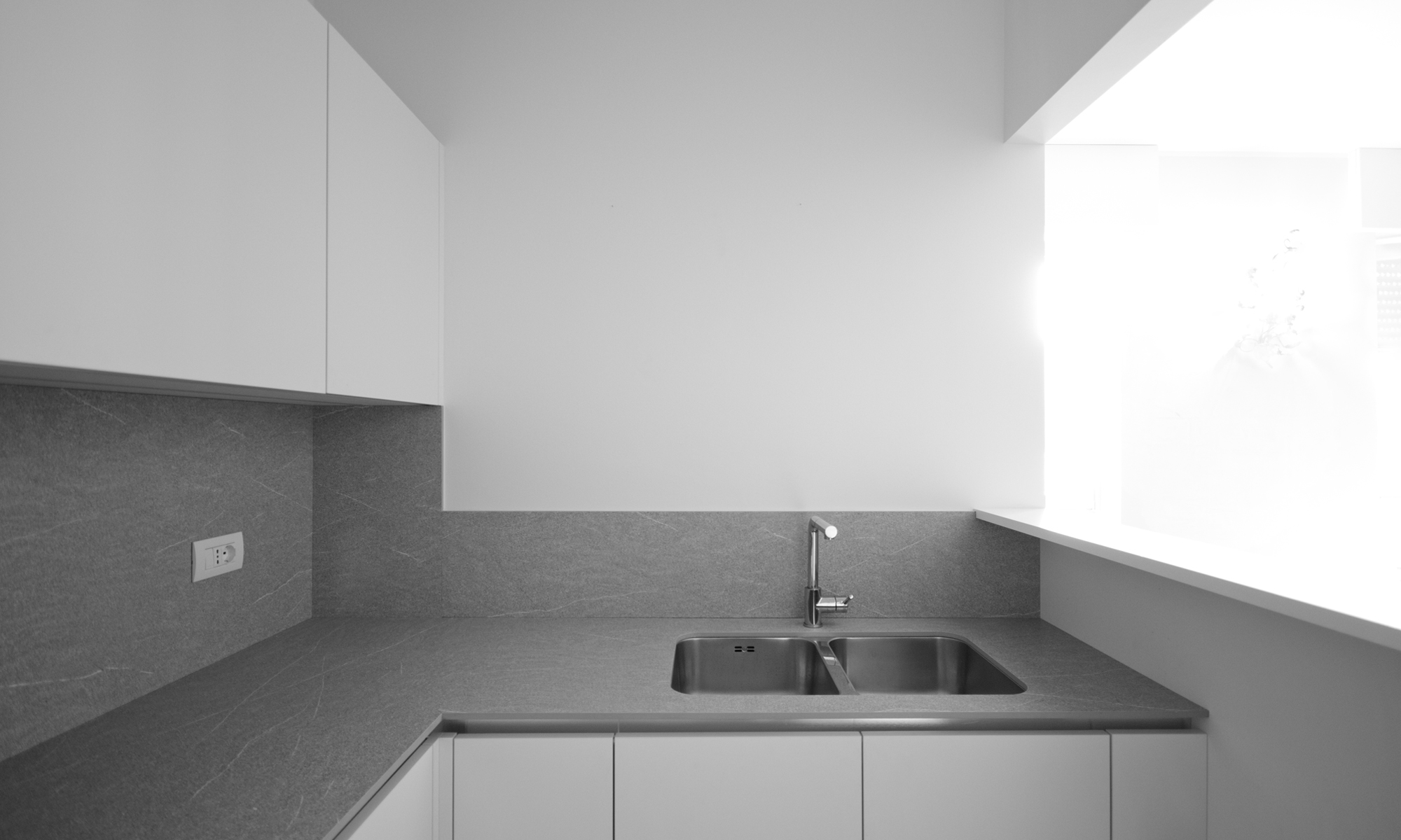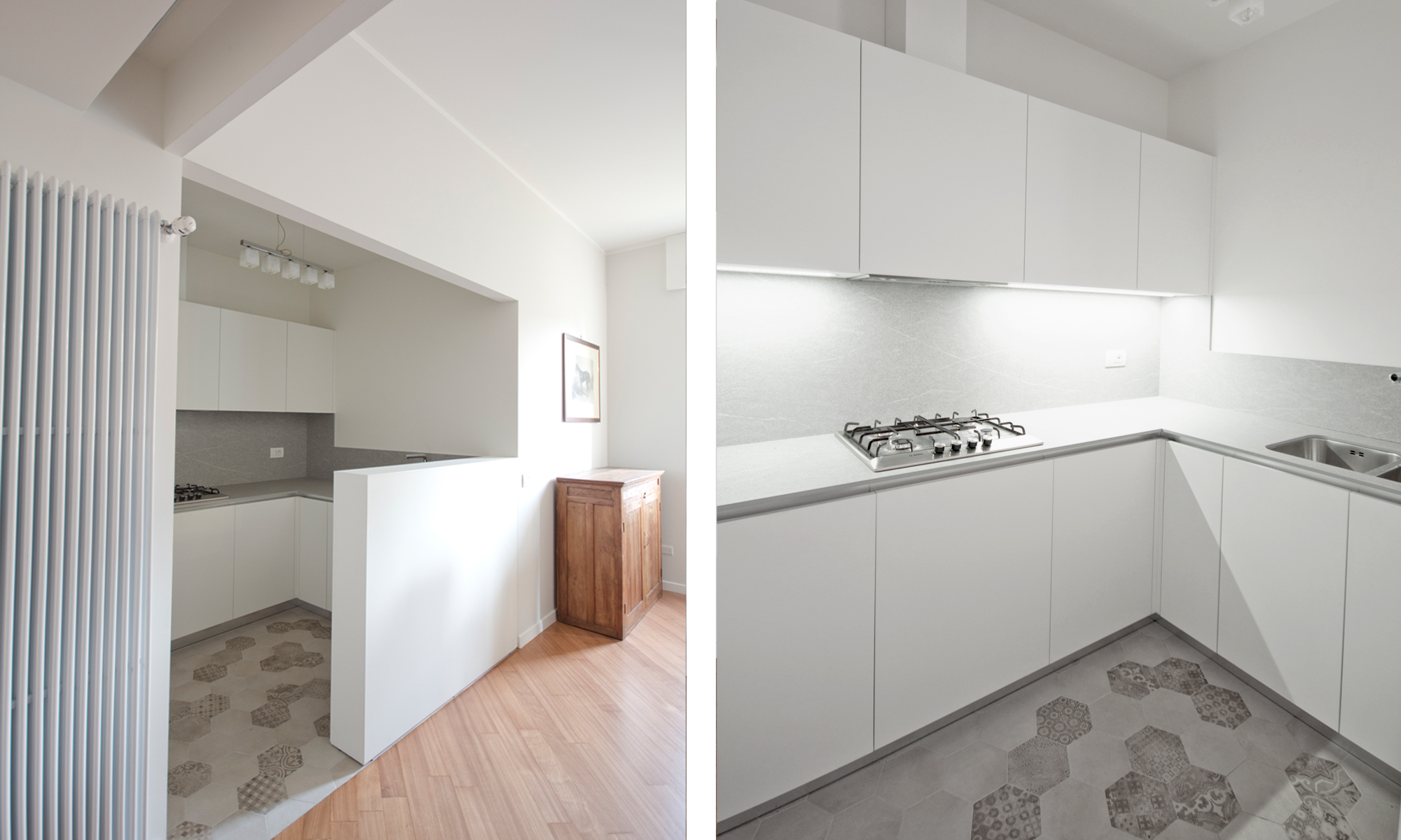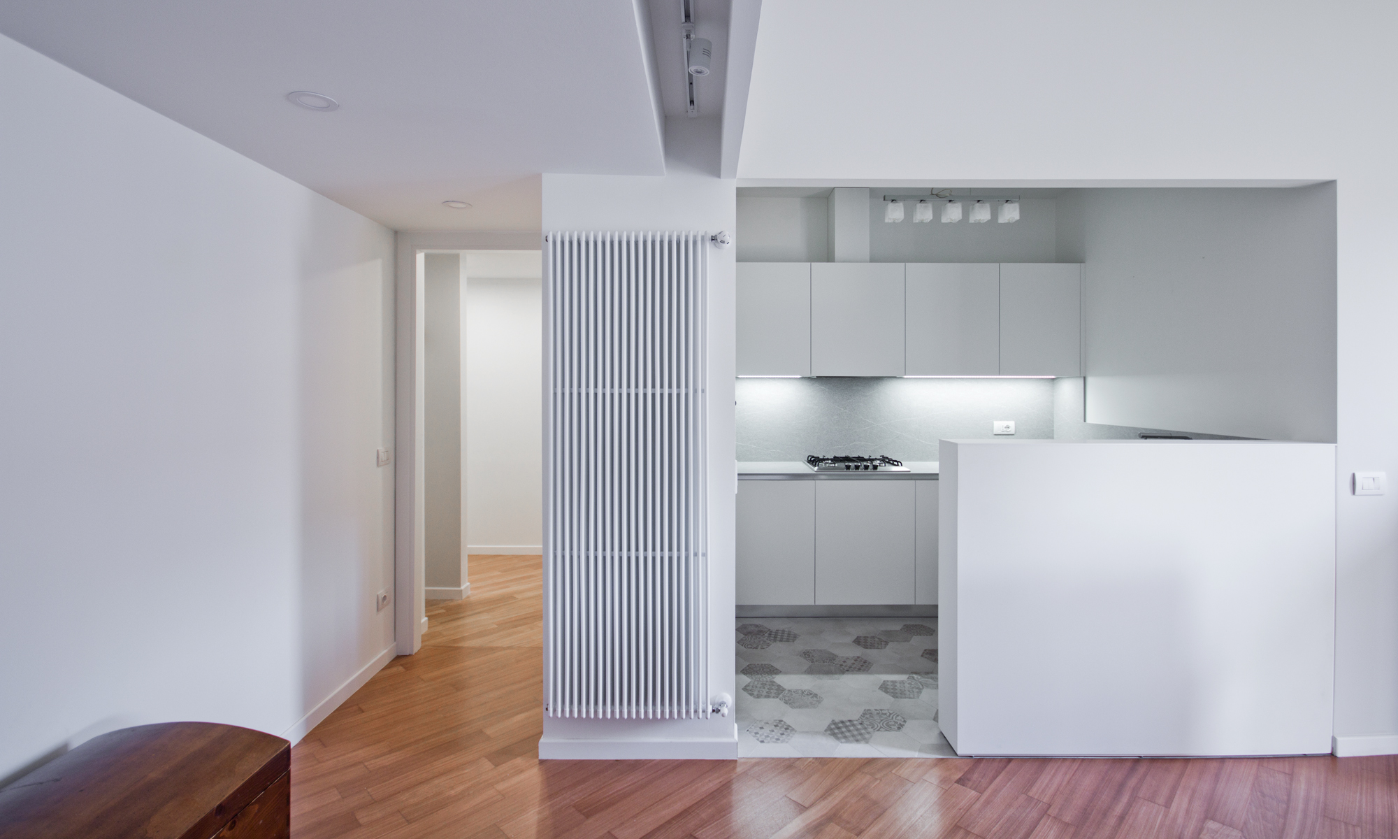 Il progetto realizzato è stato il risultato di una mediazione continua tra diversi fattori. Prima fra tutti la necessità del contenimento di costi e tempi di lavorazione, in secondo luogo la forma irregolare del perimetro dell'appartamento da cui è derivata l'ultima ma non meno importante condizione: l'involontaria presenza di alcune discrepanze tra il progetto ed il realizzato. Tali imprecisioni anzichè essere negate e corrette, sono state integrate nella planimetria "aggiustando" in corsa la distribuzione interna. Si è così raggiunto un equilibrio inaspettato, quasi entropico. Una planimetria organizzata secondo logiche di praticità e vivibilità, in cui si è cercato di dare uno spazio, seppur minimo, a tutte le esigenze del vivere quotidiano.