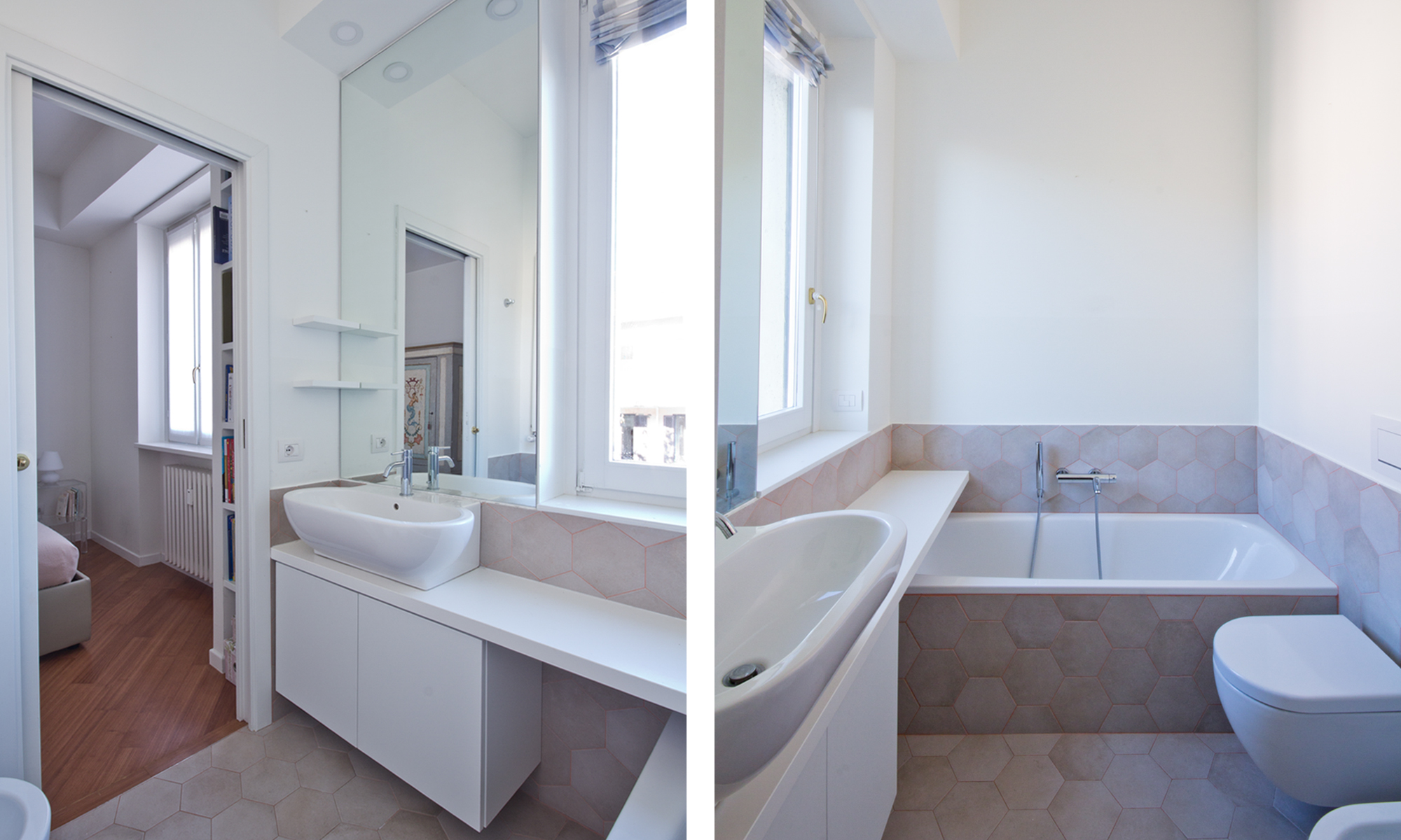 L'appartamento, risultato dalla suddivisione di un'unità su due piani, si trova all'interno di un edificio degli anni '70 nella zona Nord di Milano.