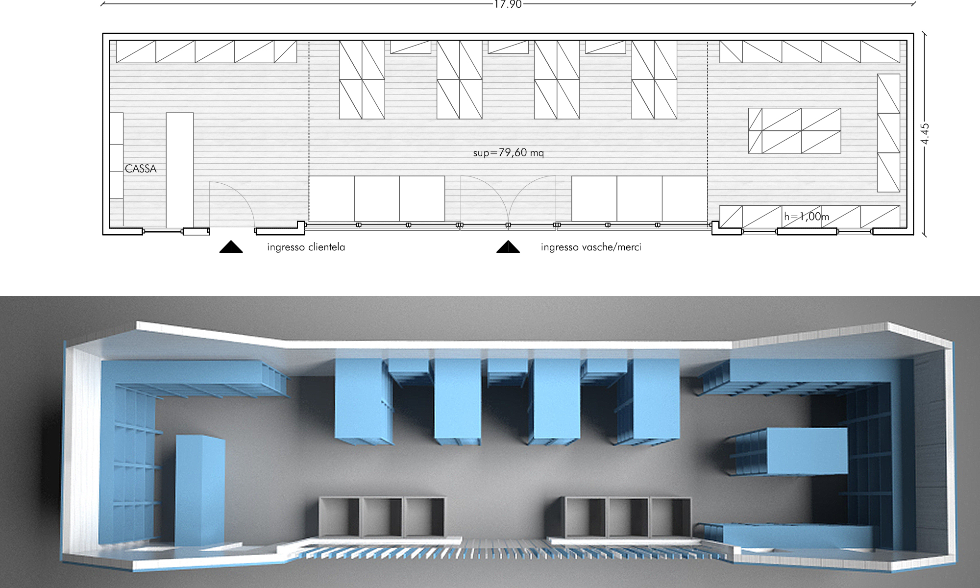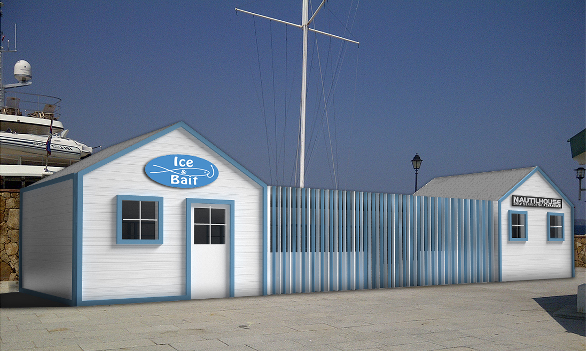 Un piccolo negozio per la vendita di prodotti ittici e ghiaccio a Porto rotondo. Partendo dall'idea del chiosco prefabbricato si sono sviluppate due proposte di progetto tipologicamente differenti ma simili tra loro per scelte compositive, colori e materiali, dettati dalla necessità di caratterizzazione richieste dal brand.