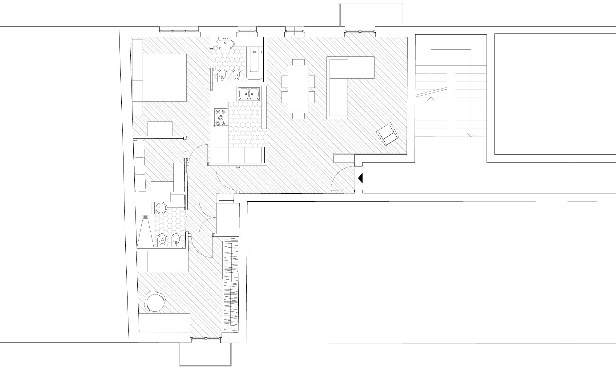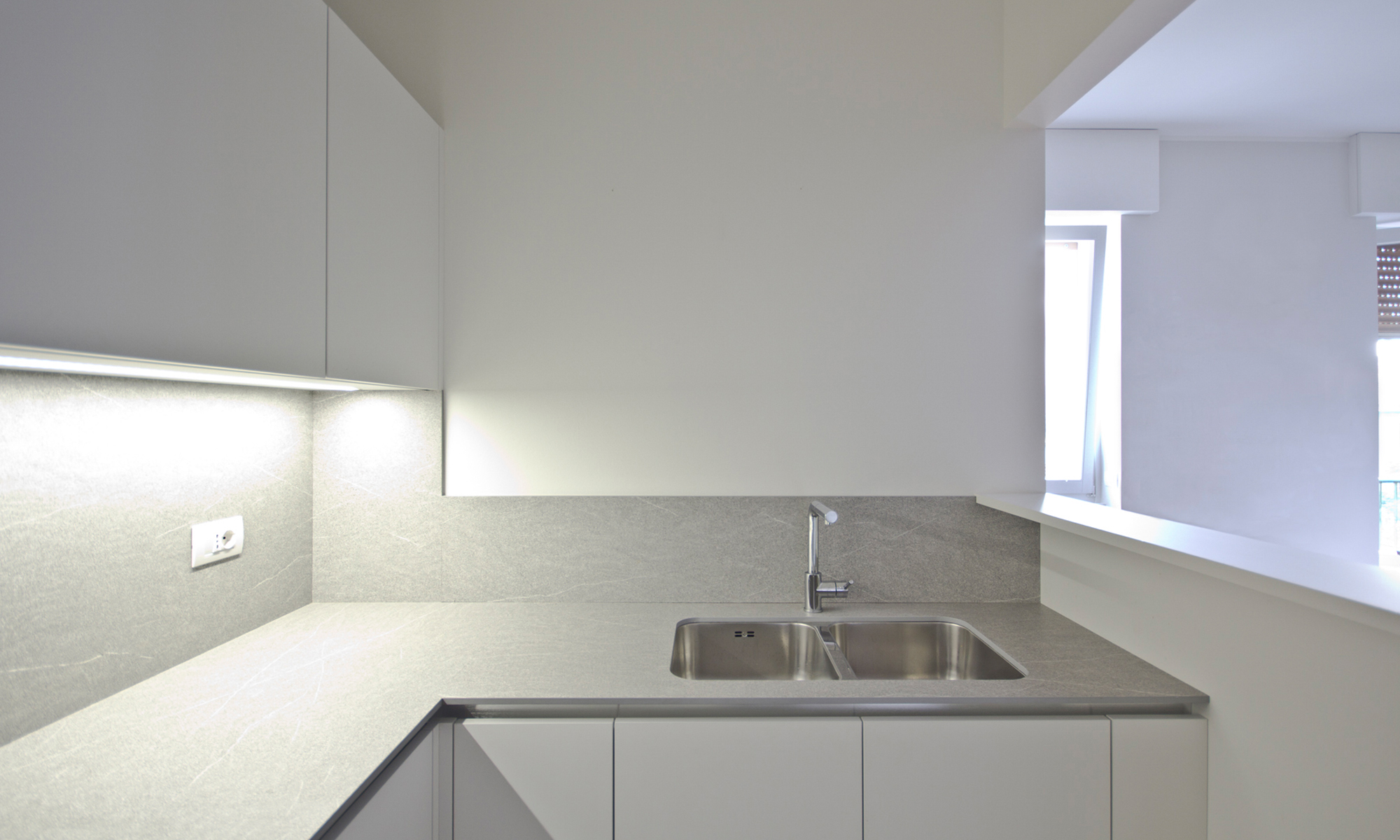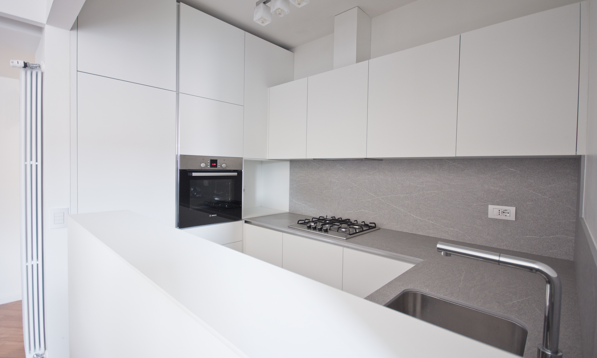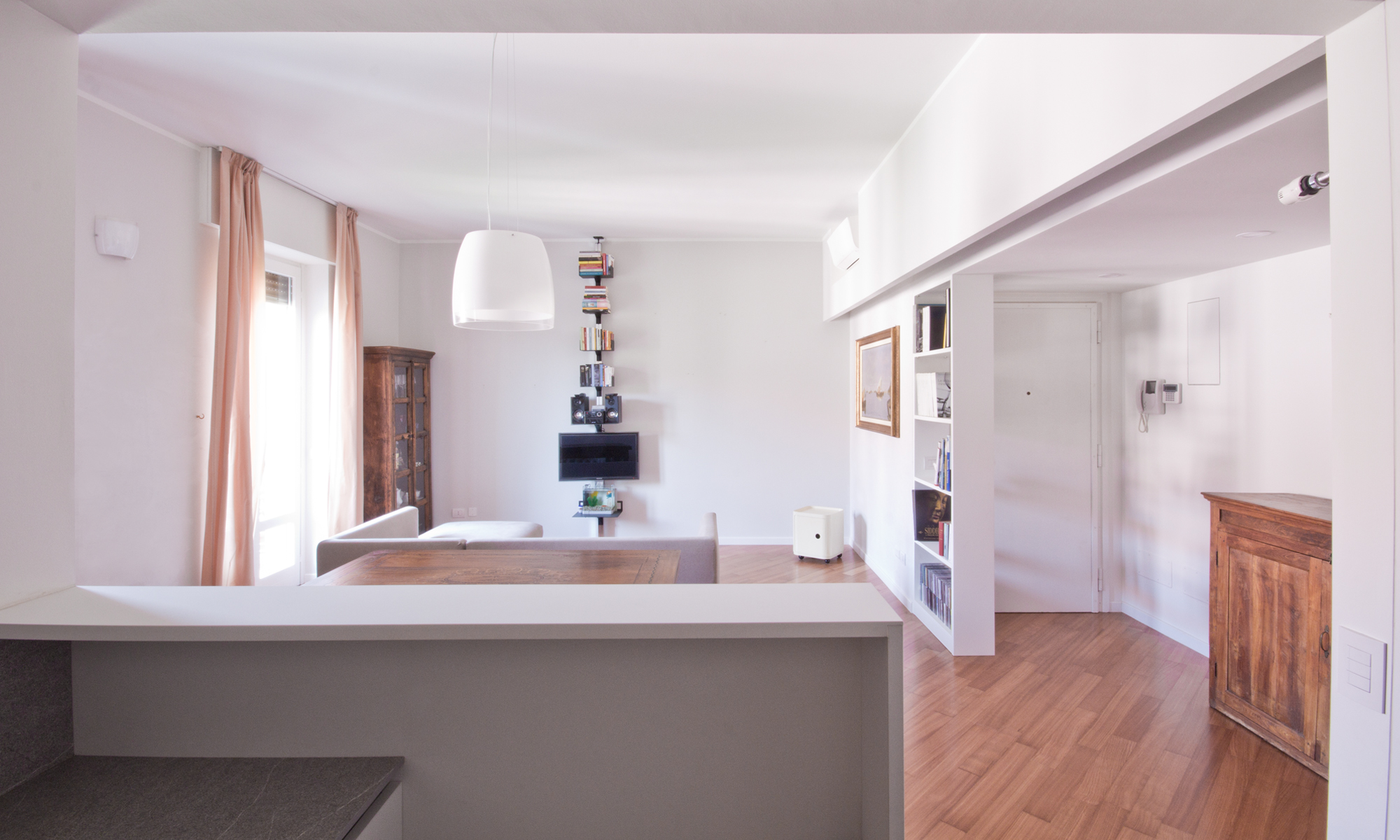 Il progetto realizzato è stato il risultato di una mediazione continua tra diversi fattori. Prima fra tutti la necessità del contenimento di costi e tempi di lavorazione, in secondo luogo la forma irregolare del perimetro dell'appartamento da cui è derivata l'ultima ma non meno importante condizione: l'involontaria presenza di alcune discrepanze tra il progetto ed il realizzato. Tali imprecisioni anzichè essere negate e corrette, sono state integrate nella planimetria "aggiustando" in corsa la distribuzione interna. Si è così raggiunto un equilibrio inaspettato, quasi entropico. Una planimetria organizzata secondo logiche di praticità e vivibilità, in cui si è cercato di dare uno spazio, seppur minimo, a tutte le esigenze del vivere quotidiano.