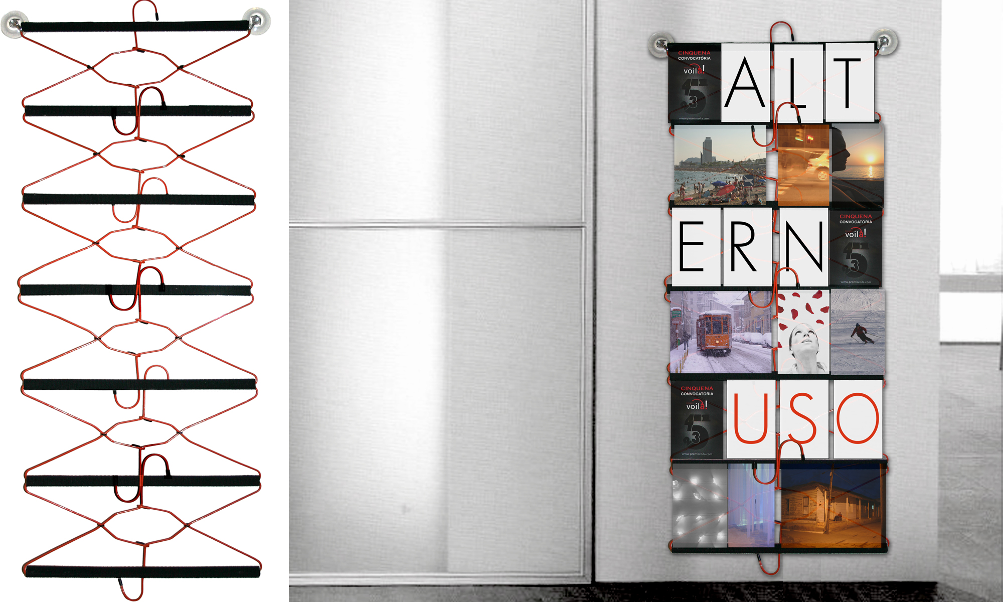 ALTERN-uso e un sistema di supporto con cui si possono costruire tende, portafotografie, paraventi e pareti divisorie mobili.