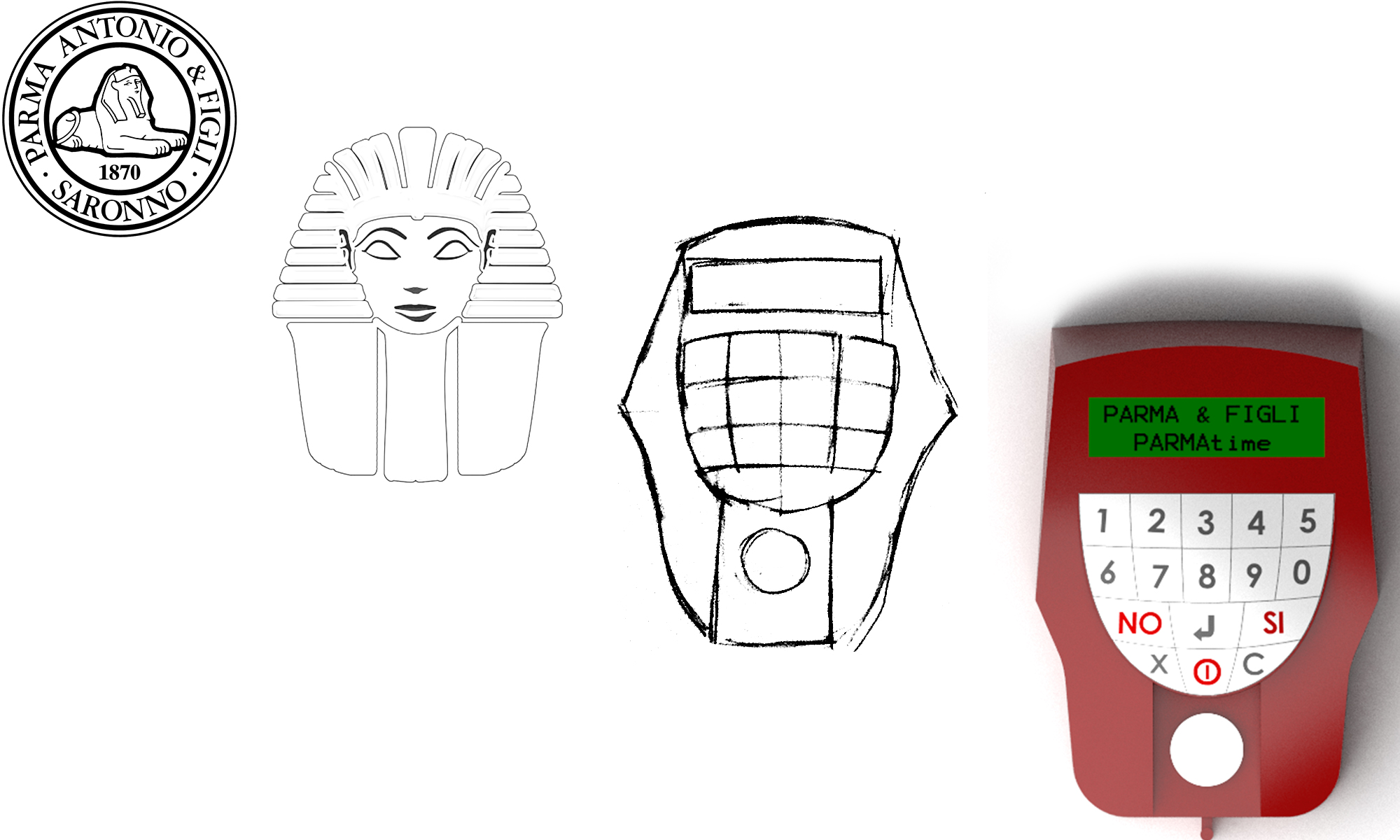 Partendo dal logo dell'azienda in cui è raffigurata la Sfinge, immagine efficace rispetto al core business aziendale, se ne sono riprese le fattezze del volto stilizzandole fino ad arrivare ad un oggetto che, pur evocando la figura iniziale, assume forme in sè originali.